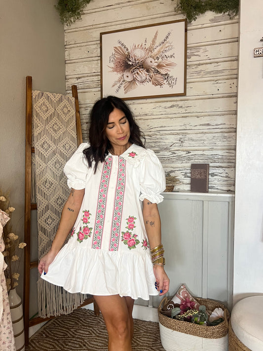 Embroidered Floral Mini Dress