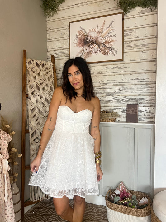 Strapless White Lace Dress