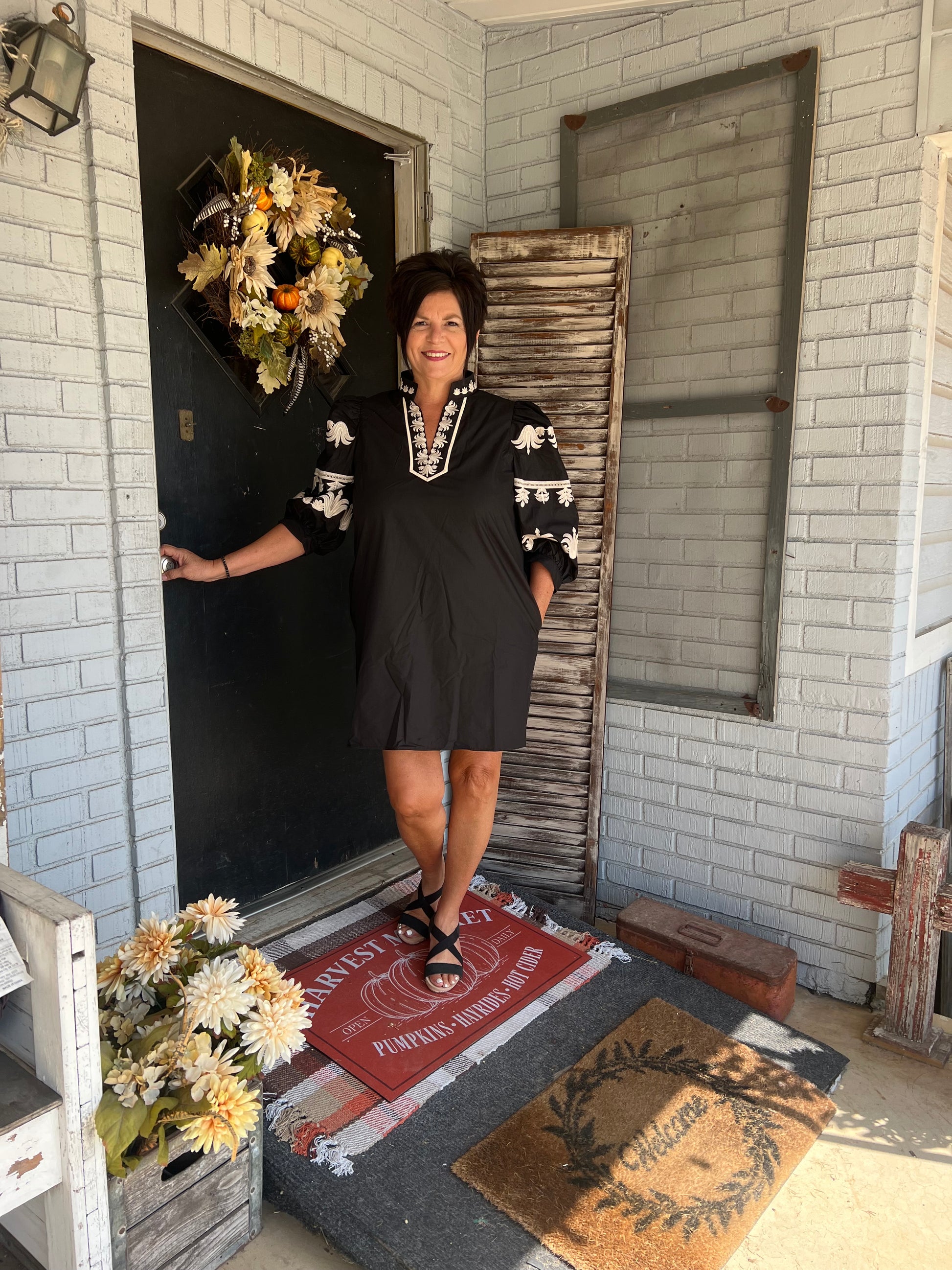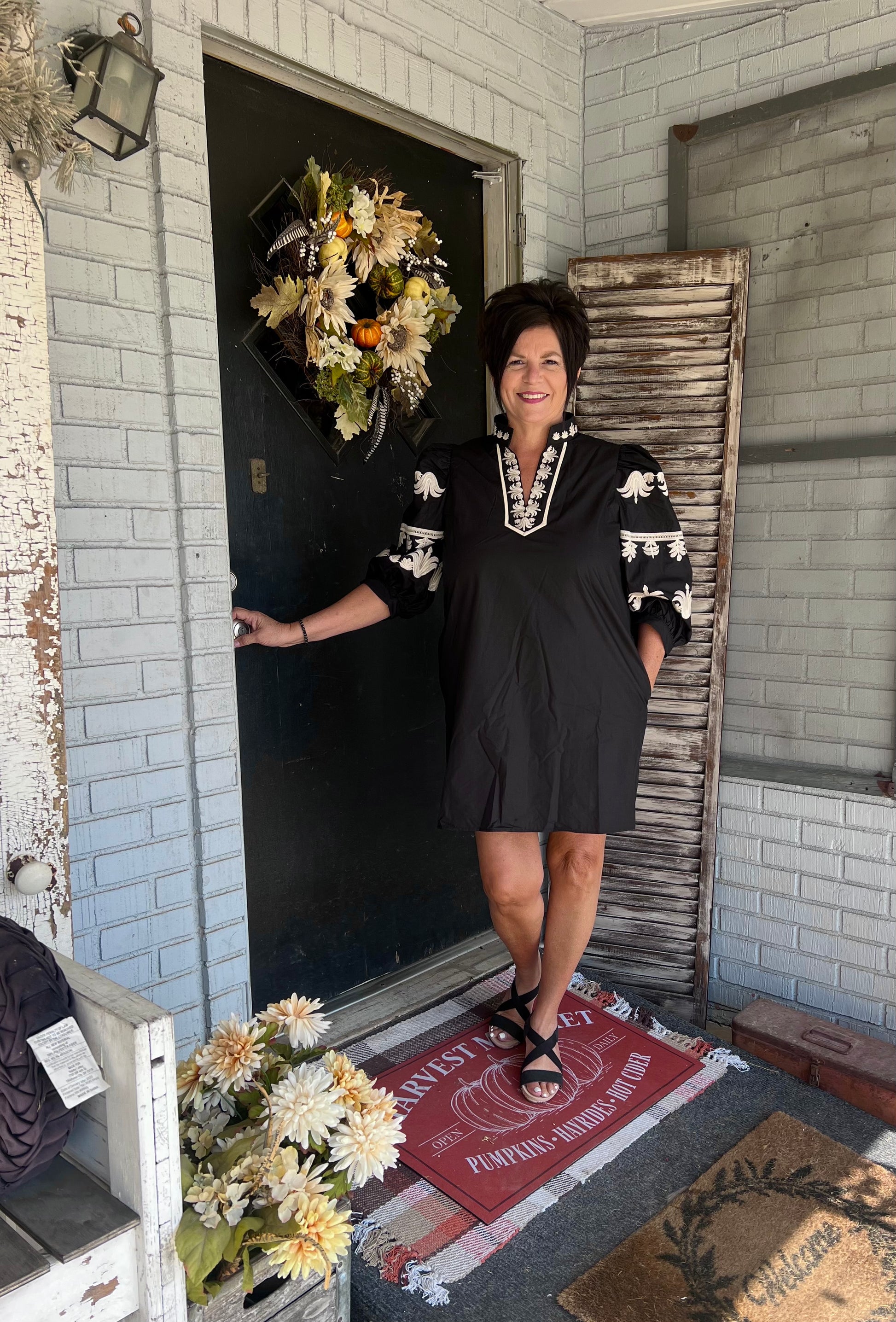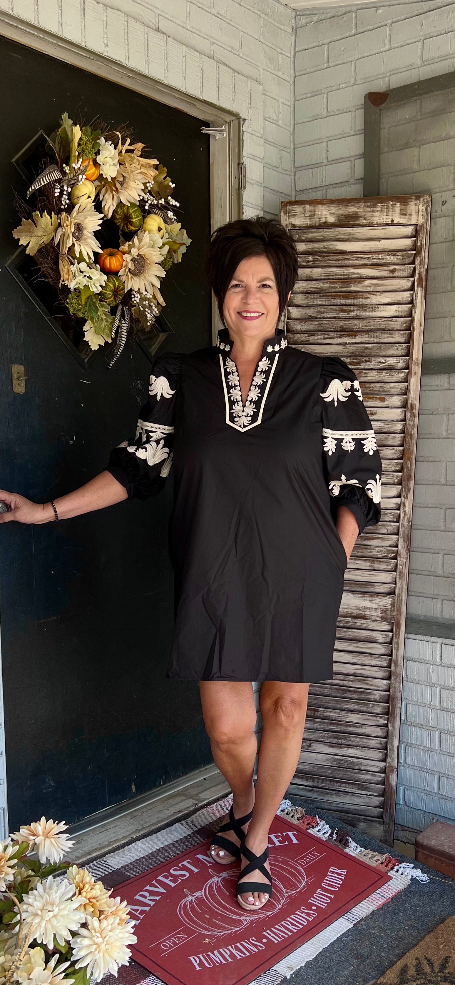 Embroidered black dress
