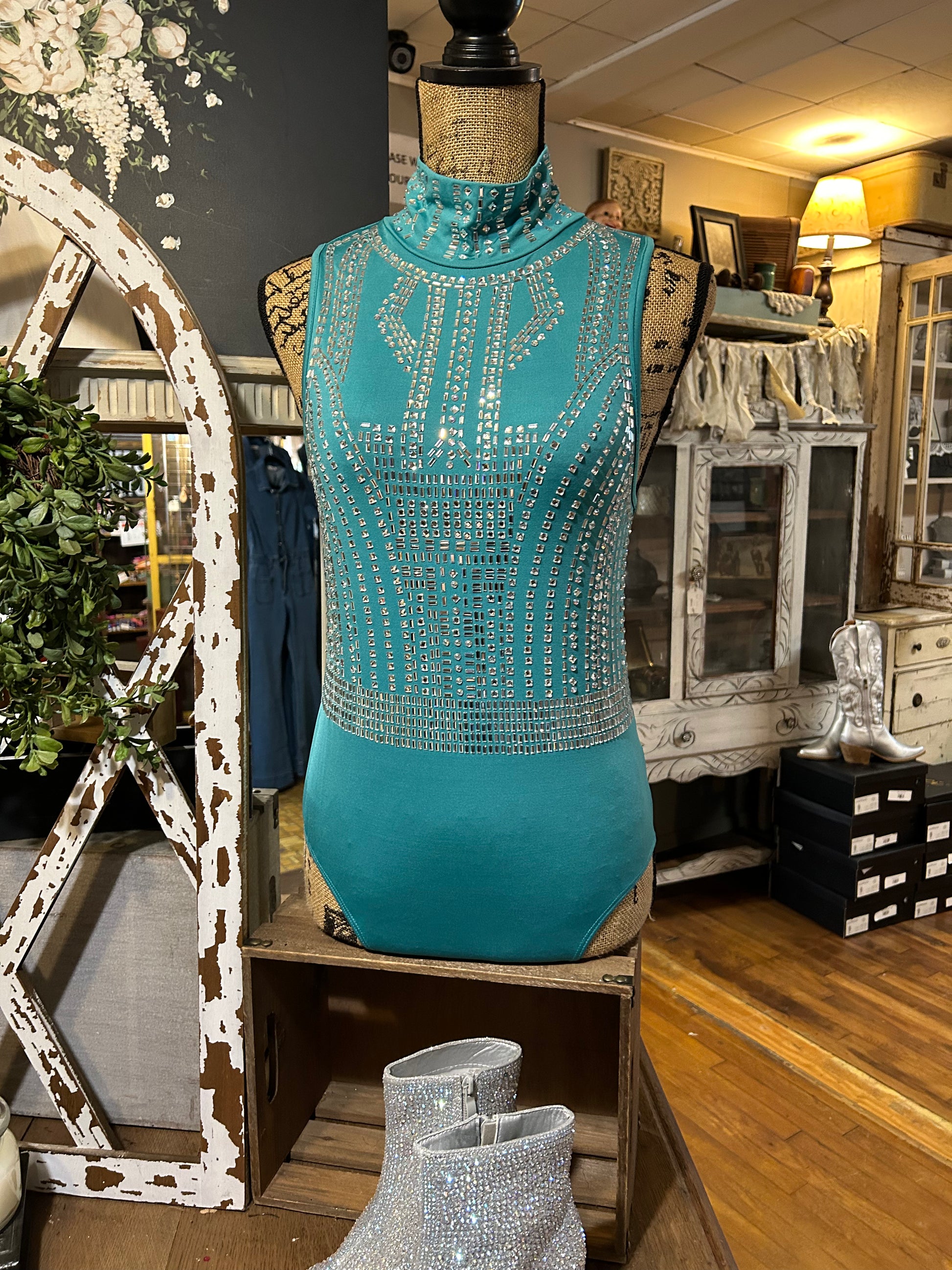 Jewel embellished sleeveless bodysuit